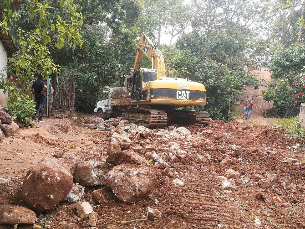 Facilitación de maquinaria para trabajos de terracería para el proyecto empedrado de la calle Clementina Henríquez, la cual representa el acceso principal de los barrios Rancho Chico, La Tejera y La Madura del casco urbano, así como también sirve de acceso al centro de salud.